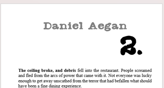 You think this would be obvious, but I’ve had a few books come my way without page numbers anywhere on them. I’ve seen readers complain about this from indie authors as well. You have the option to put it at the top or the bottom as well as choosing to left, right, or center justify them. Putting them in the center of the footer is the most common way to do this, but there isn’t a wrong place for them since it’s another one of those subjective quirks.